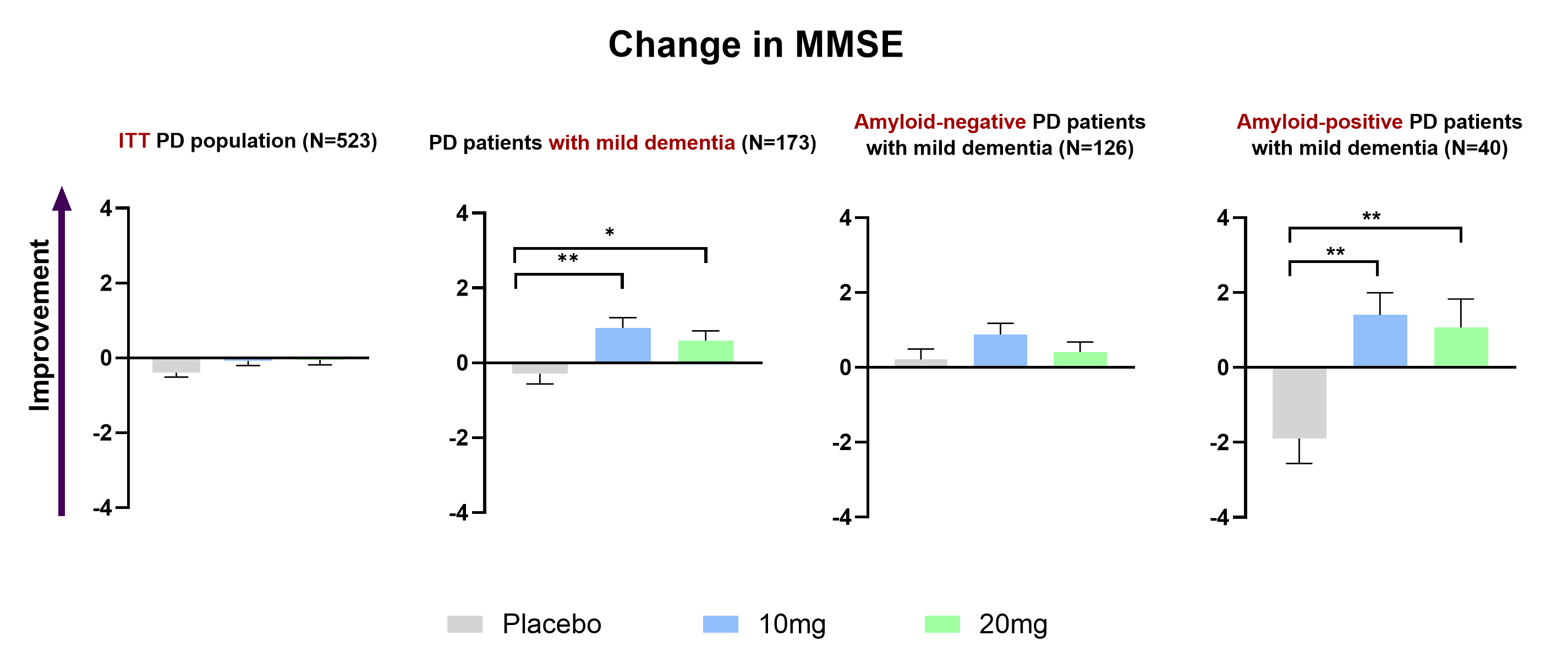 In individuals with mild dementia (MMSE >20) who were also positive for amyloid and tau, buntanetap produced the most pronounced cognitive improvements.